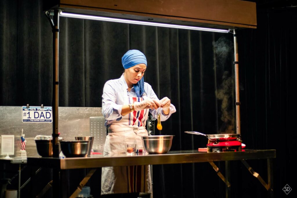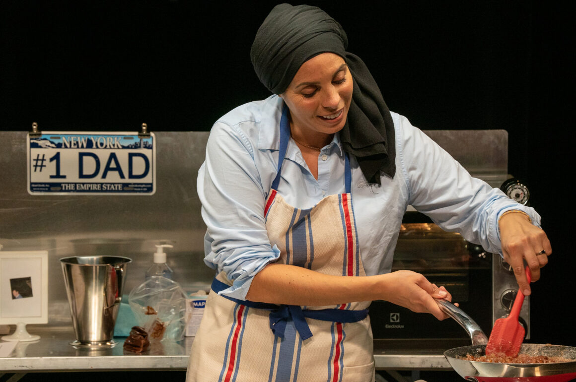 Au non du père est un spectacle qui sort de l’ordinaire. D’abord parce qu’il embarque le spectateur au coeur d’un récit qui semble presque lui appartenir. Anissa incarne son propre personnage et interroge le public : son récit étonnant est-il réel ? Ensuite, parce qu’il interroge à la fois la notion de réalité et de fiction, mais aussi celle de la filiation, du souvenir et surtout de l’imagination. On le savoure telle une véritable gourmandise, au sens propre comme au figuré (car Anissa concocte des pâtisseries pour les spectateurs tout au long du spectacle, un régal). « Les effluves, les textures, le goût du sucre, du chocolat révèlent la part d’un récit caché que les mots ne parviennent pas à énoncer » précise le metteur en scène. La cuisine rassemble et unit, comme cette pièce étonnante dont on savoure l’authenticité.
